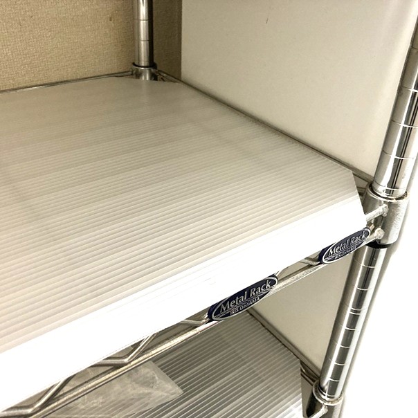 プラダンの四つ角をカットして棚板として使用することで、ホコリ防止・目隠し・軽量化を同時に実現できます。重量物が少ない場合は十分な強度を発揮します。